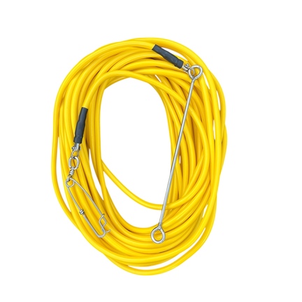 Linen fås i tre længder – 10, 15 og 20 meter – så du kan vælge den, der passer bedst til dine behov og dybdekrav. I den ene ende er linen udstyret med en kraftig swivl og en 125 mm tunaclip, som gør fastgørelse af udstyr hurtig og sikker.